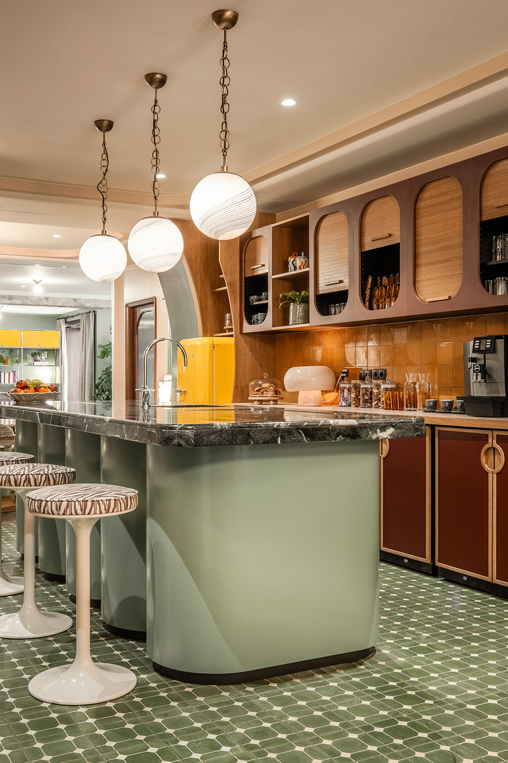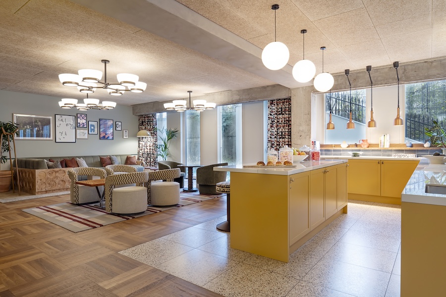 The Pantry is a communal help-yourself kitchen that’s yours to raid. It’s fully stocked with teas, coffee, milk, snacks and fruit to keep you ticking all day, and it flips to a private bar come evening time.