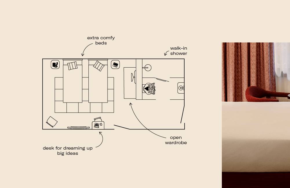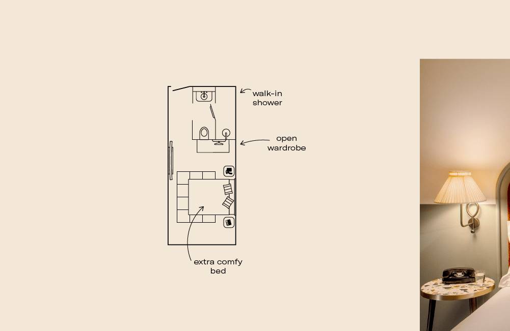 Get cosy in West Berlin with a twin bed and Nouveau-inspired armchairs that nod to the neighbourhood’s golden-era past. Make yourself at home in a warm, sophisticated room that brims with local character, alongside a plush en-suite featuring terrazzo wall tiles.