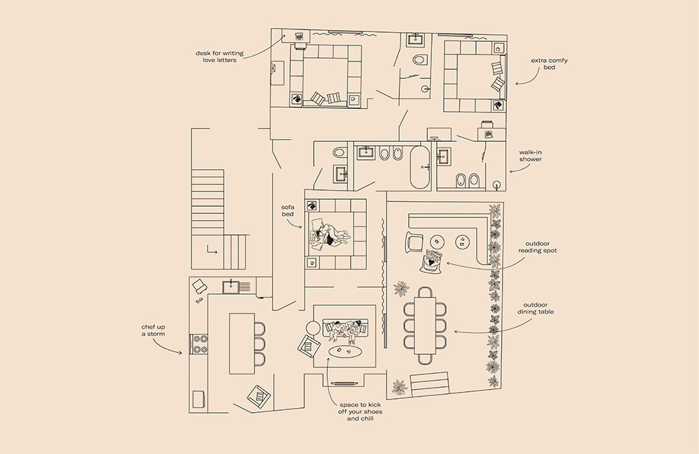The largest of the lot, House Florence comes with three en-suite bedrooms, a state-of-the-art kitchen, dining area, homey living room and outdoor terrace with dining table. A house within a hotel, it’s ideal for longer stays of up to six people. Guests can expect signature Hoxton design, plus plenty of extras from the neighbourhood.